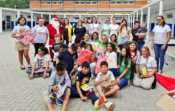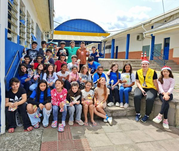 "A entrega de mais de 300 kits da atividade de extensão 'Natal Solidário' para as crianças das escolas Noeli Silva de Azevedo e Souza e João Cônego Marquesi foi um momento de pura alegria para nossos alunos e para as crianças! Para tornar o momento ainda mais especial, contamos com a ilustre presença do Papai Noel! 🥰💛 Polo Canela-RS – Rede Uniergs!"