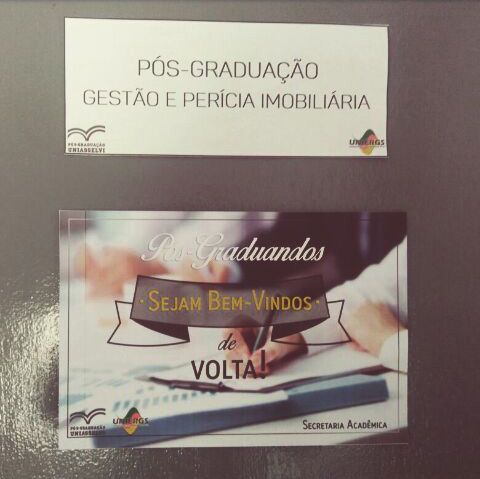 Foram recebidos com cartazes confeccionado pela Secretaria Acadêmica da UNIERGS, desejando ótimo retorno e pelas professoras que irão ministrar as novas disciplinas dos cursos, respectivamente Lorena de Souza Fontoura e Ravine Sttefan.