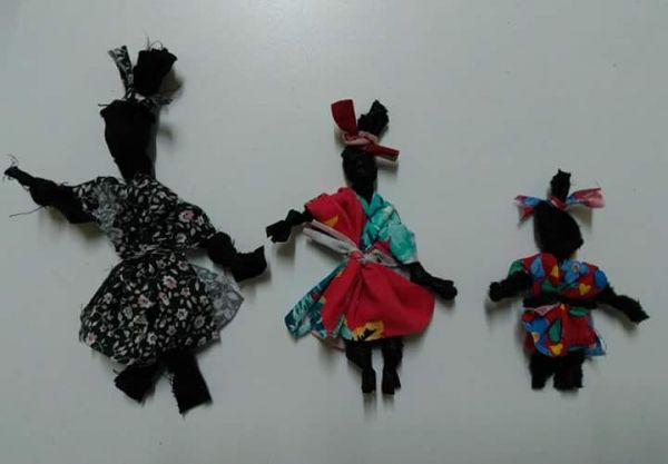 As Abayomi são pequenas bonecas pretas, feitas de pano e sem costura alguma, apenas com nós ou tranças.
