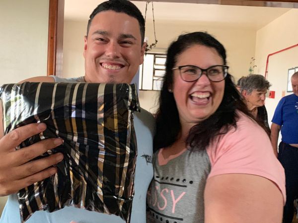 Os presentes foram doados pelos professores,amigos,familiares e funcionários do pólo de Bento Gonçalves onde cada um levou um lanche para a confraternização.