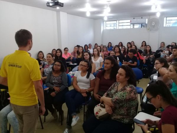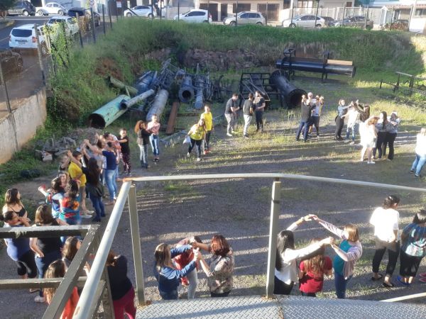 Conforme organização dos professores foi realizado várias dinâmicas, propondo o trabalho em equipe e socialização entre os alunos de outros cursos.