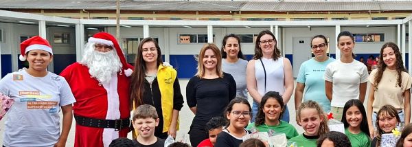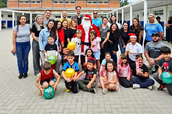 "A entrega de mais de 300 kits da atividade de extensão 'Natal Solidário' para as crianças das escolas Noeli Silva de Azevedo e Souza e João Cônego Marquesi foi um momento de pura alegria para nossos alunos e para as crianças! Para tornar o momento ainda mais especial, contamos com a ilustre presença do Papai Noel! 🥰💛 Polo Canela-RS – Rede Uniergs!"