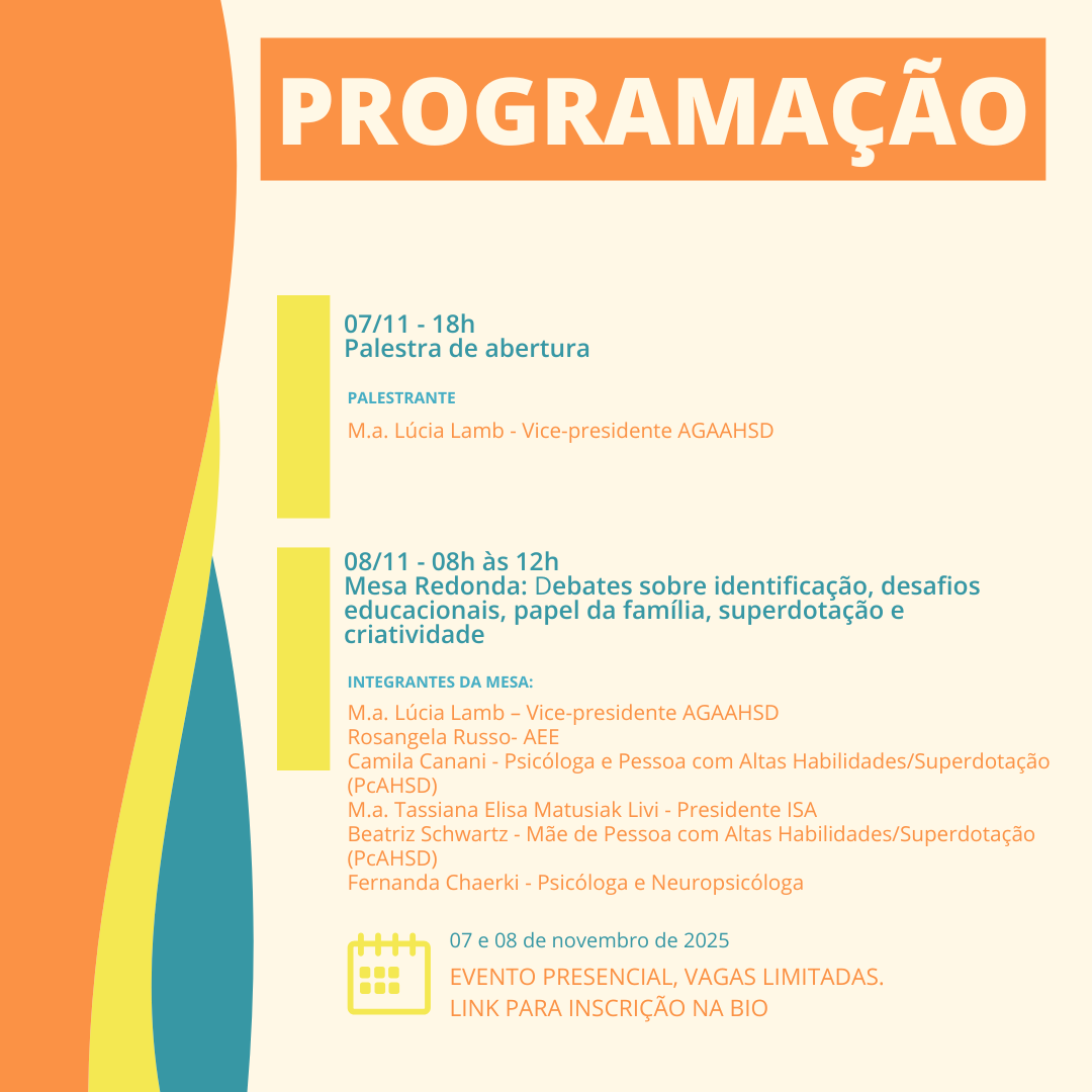 O objetivo do simpósio é promover um espaço de aprendizado e debate qualificado sobre superdotação e altas habilidades, reunindo especialistas, educadores, pais, estudantes e demais interessados.