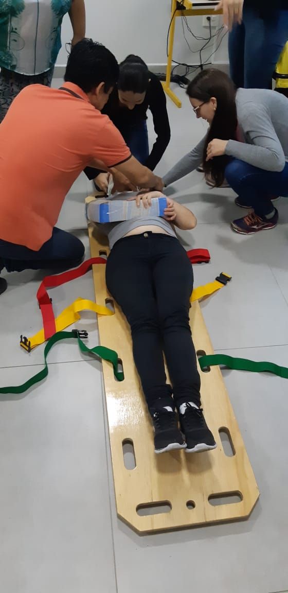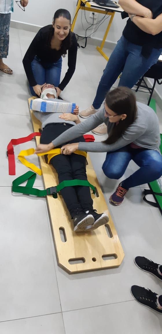 Na noite de sexta-feira, dia 26 de abril de 2019, a turma de Segurança no Trabalho (SEG0515), teve sua primeira aula prática referente a disciplina de Primeiros Socorros, onde estudam para estarem preparados em caso de emergência e como dar o suporte de primeiros socorros a vítima de acidente. Com o acompanhamento do tutor Ricardo Massahico Kagimoto aprenderam a imobilizar a vítima e como colocá-la adequadamente na maca em caso de emergência.